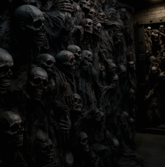 Trigger: When at least half of the party steps inside the tower, the trap is triggered, releasing the torrent of undead remains.